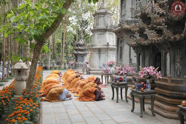 Cho nên ân đức của cha mẹ, ân đức của chúng sanh, ân đức của quốc vương, ân đức của Tam Bảo. Ân Tam Bảo bao gồm luôn ân đức của thầy tổ trong đó. Người học Phật luôn luôn ghi nhớ, cung kính và làm thế nào để đền ơn đáp nghĩa. Trong mùa Vu Lan chúng ta hãy làm một việc gì đó Tuỳ phận. Hiến tặng một niệm an lành, một nụ cười, một lời kinh, một hành động cho đến một chén cháo, một gói quà. Tất cả sự hiến tặng tuỳ hoàn cảnh. Tôi nghĩ ai ai cũng làm được. Và những công đức tu tập có được, chúng ta dâng lên Tam Bảo chứng minh hồi hướng đến cha mẹ. Nhà nho người ta có câu nói 愼終追遠,民德歸厚矣。Thận chung truy viễn, dân đức quy hậu hỉ. (Trích 學而 chương Học Nhi, 論語 Luận Ngữ). 愼終 thận chung tức là luôn luôn chăm chú, tận tụy chăm sóc đến những người ân nhơn của ta đang có mặt với ta. 追遠 truy viễn tức là đối với những tổ tiên những người ân nhơn đã qua đời mà chúng ta cũng phải ghi nhớ, hồi hướng công đức đến tổ tiên cửu huyền thất tổ quá vãng cách ta đã mấy đời mà ta còn ghi nhớ, tưởng niệm. Việc làm đó cũng nói lên được đối với những người ân đang sống chung với ta, đang có mặt với ta trong từng phút giây hiện tại này.